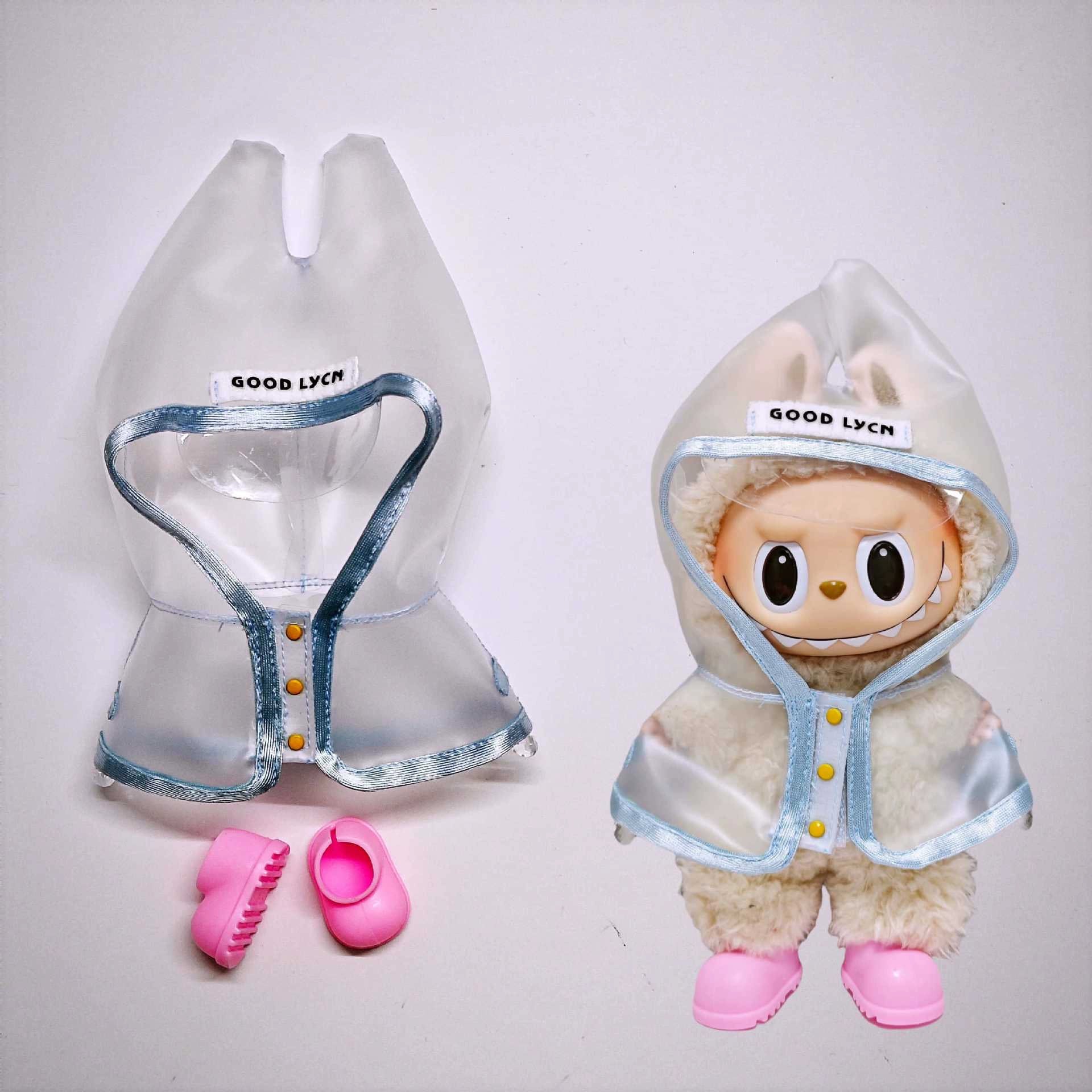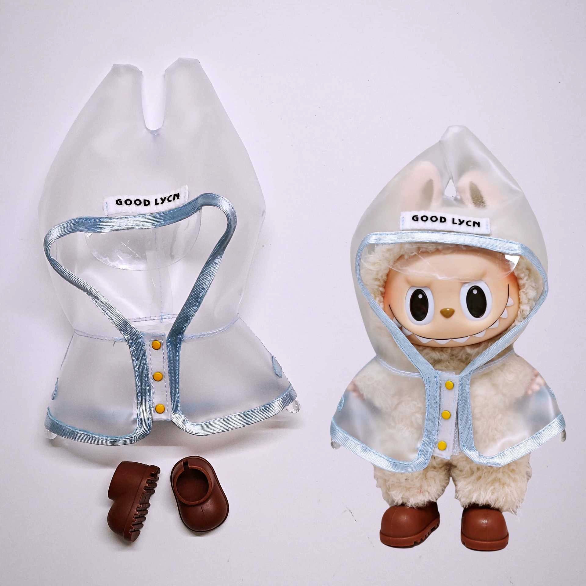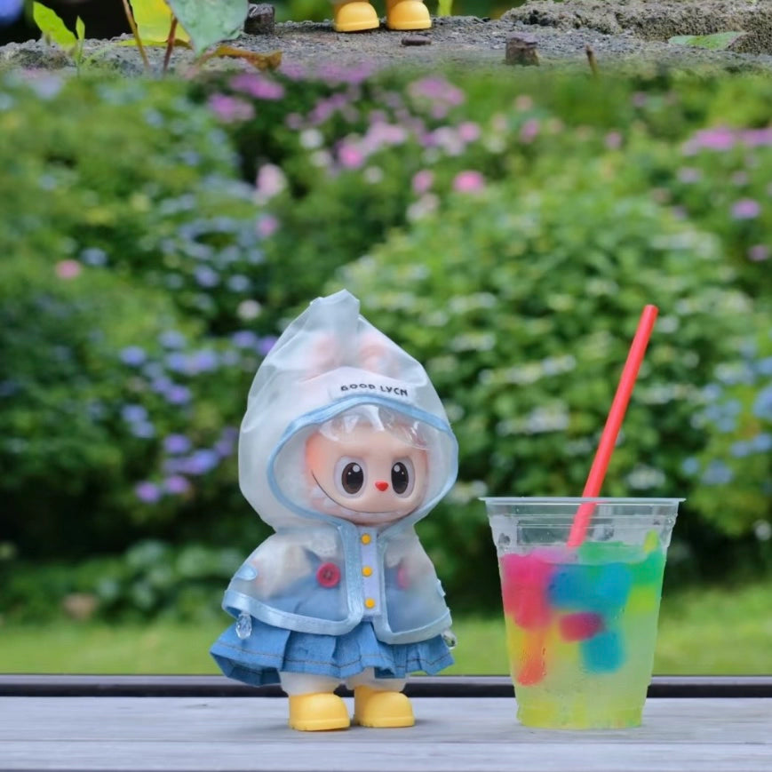 Labubu Rainy Day Essentials - Transparent PVC Raincoat for Vinyl Dolls (No Doll & Shoes)
