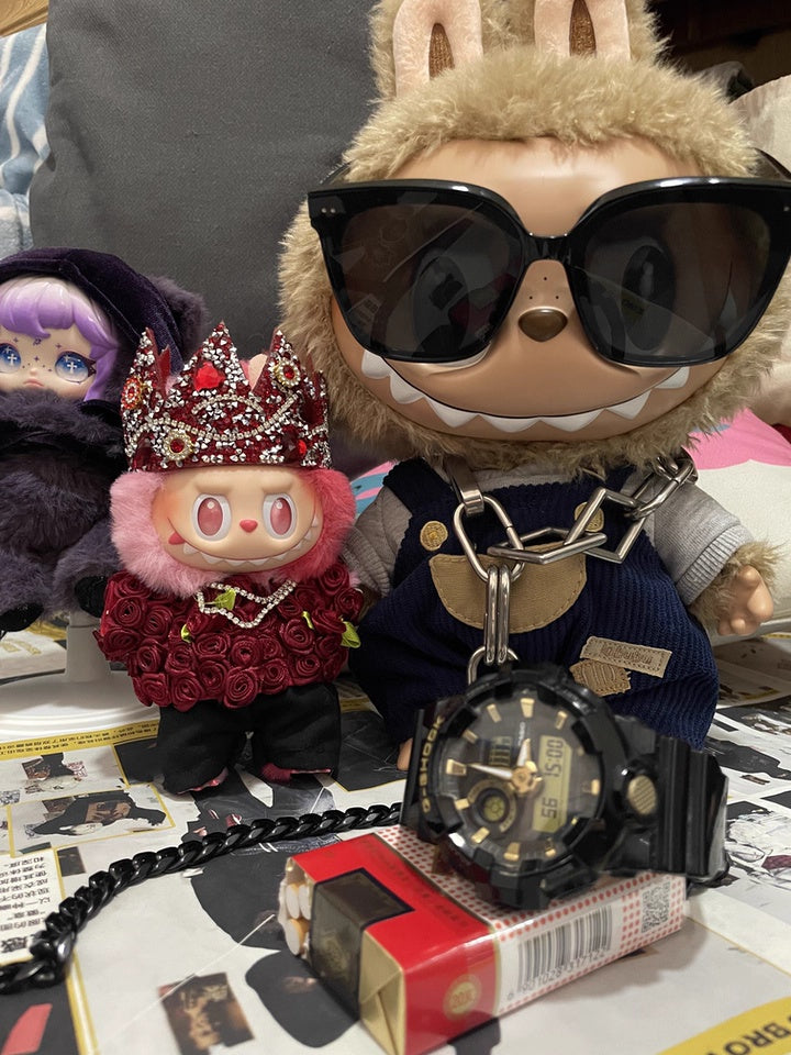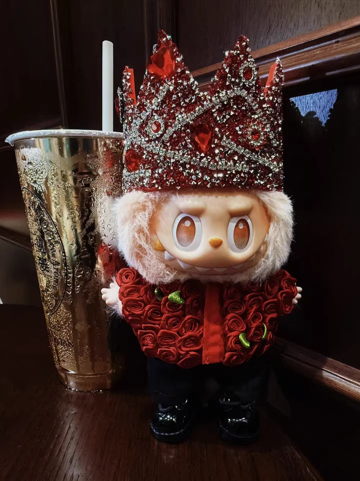 Handmade 17cm Labubu G-Dragon's Concert Red Rose Crown Outfit Set