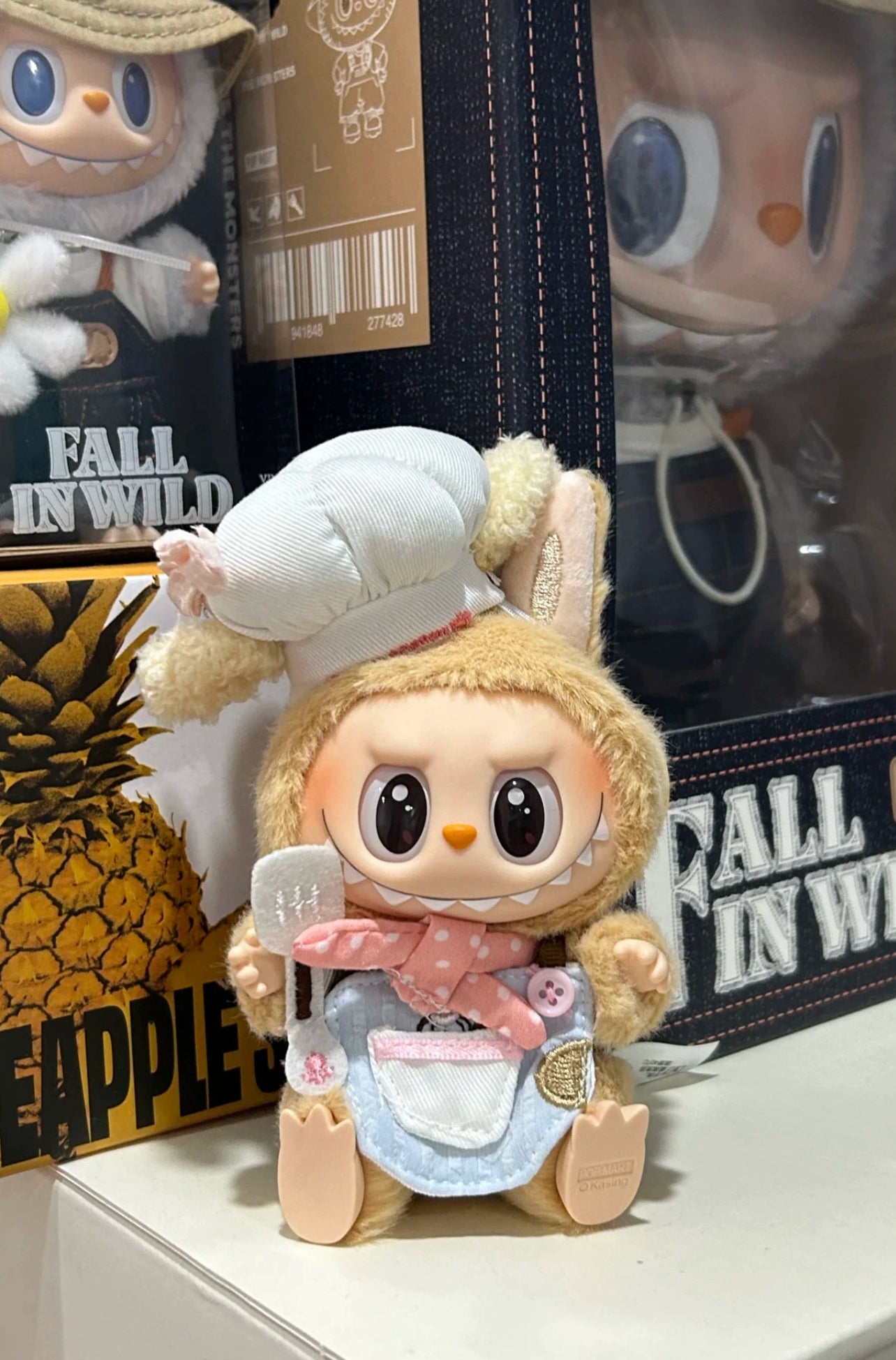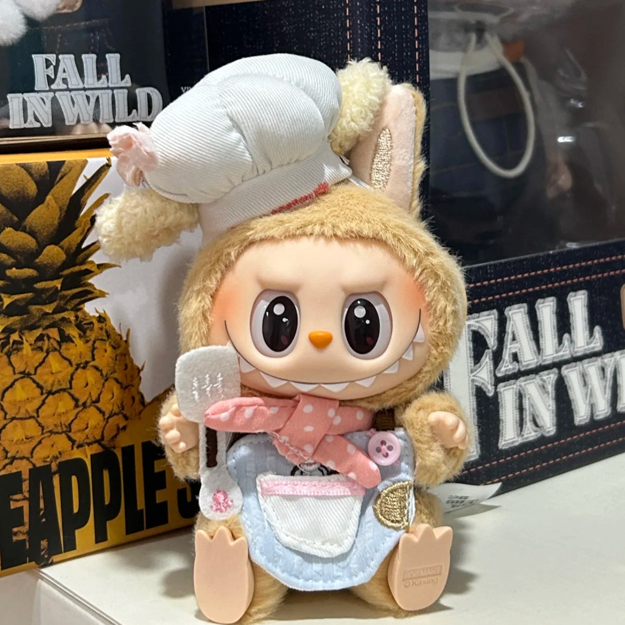 Labubu Gen 1-2 Sitting Party Cute Pink Dot Chef Egg-Pattern Outfit | Fits 17cm Vinyl Plush Dolls