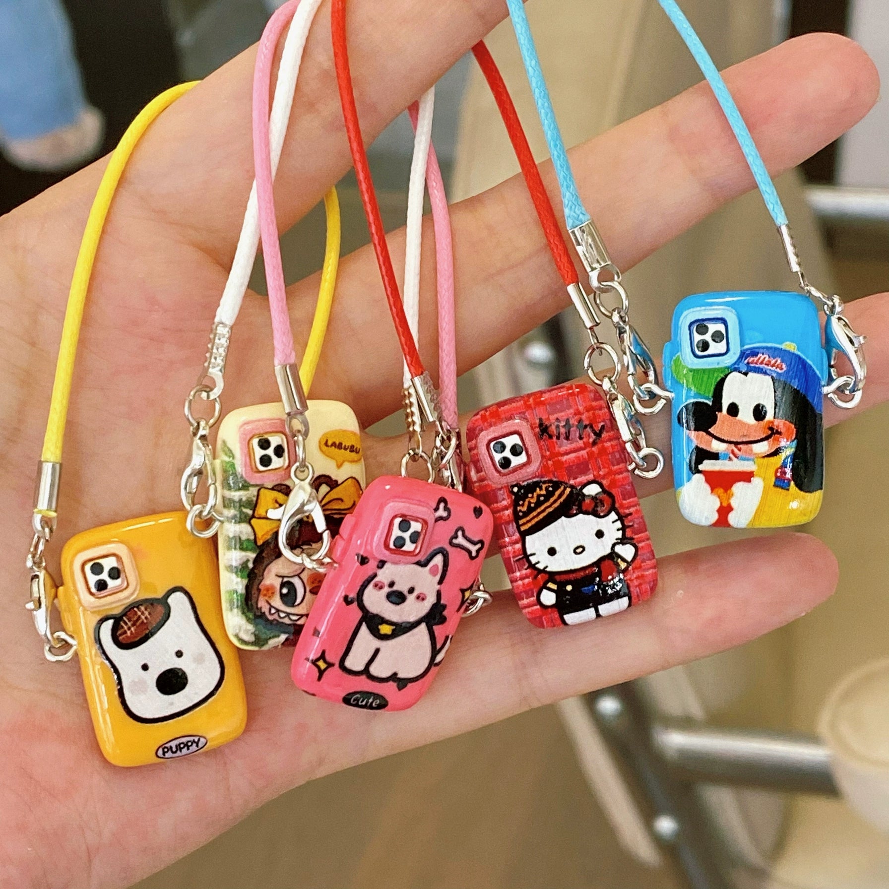 - Durable metal split ring attaches to: • Phone cases • Backpacks • Blind box bags