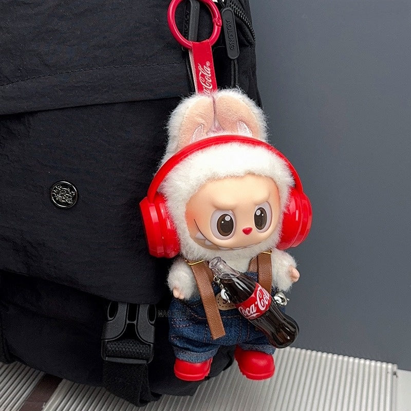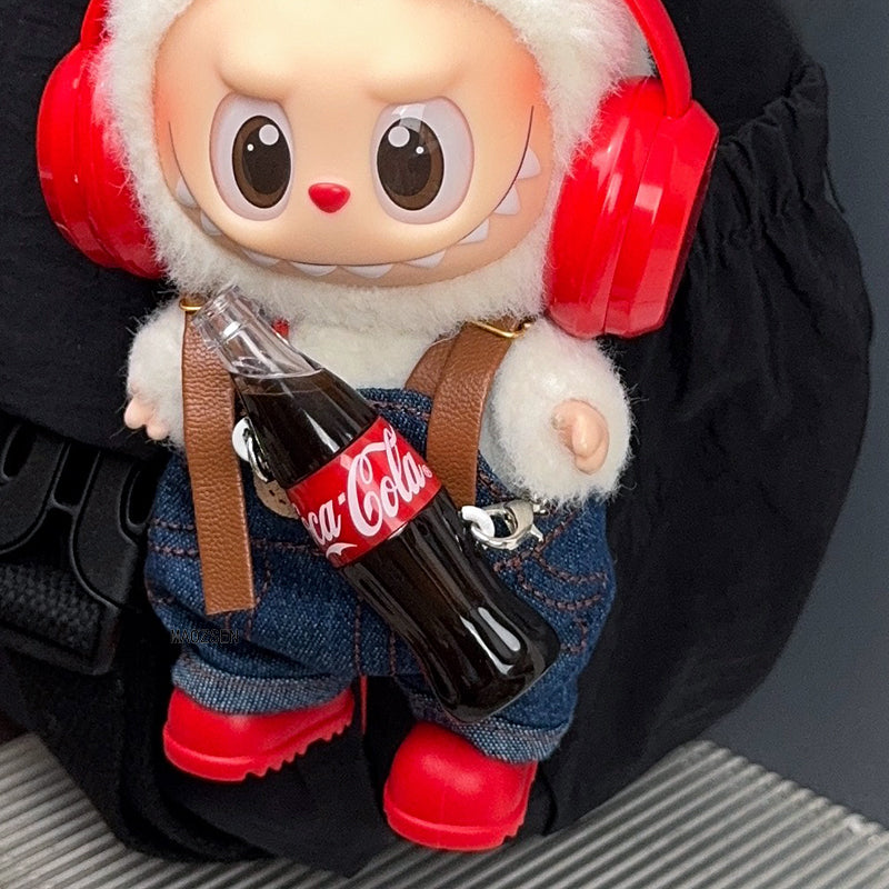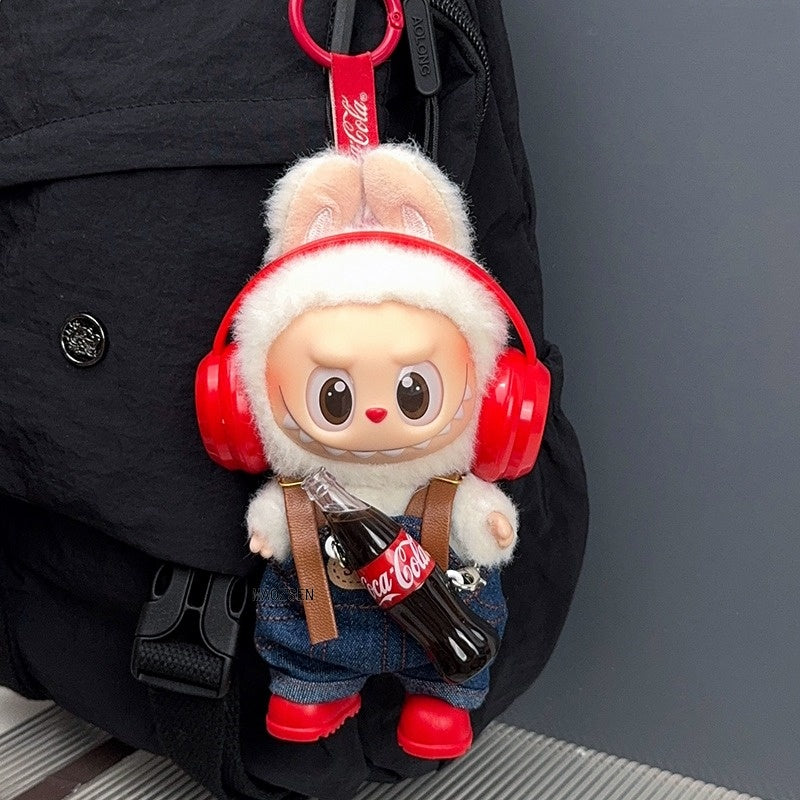 POP MART Labubu Doll Clothes Set - Cute Overalls + Headphones + Shoes for Gen 1/2/3 Figures (Sitting/Standing Poses) | 17cm Vinyl Outfit