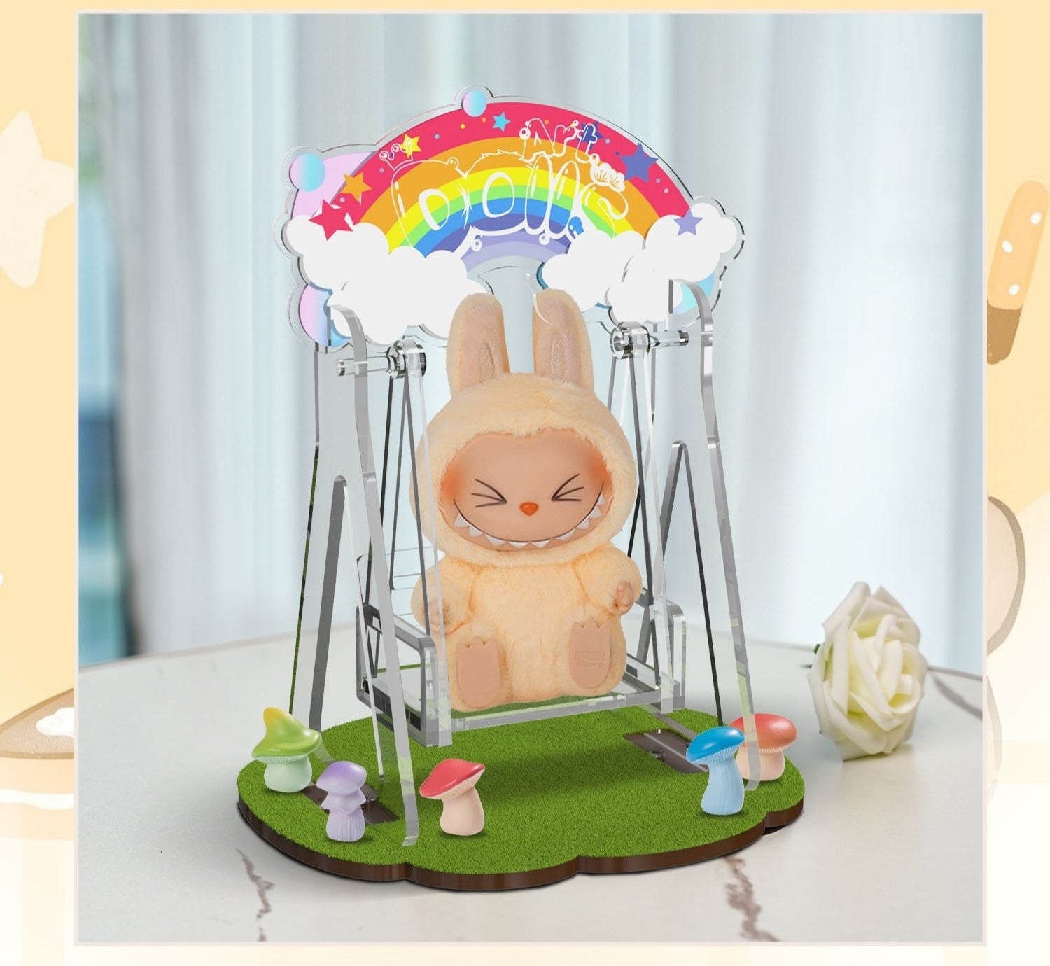 Here’s the delightful LABUBU Carnival Swing Set – a whimsical hanging seat that turns your vinyl doll into the star of its own amusement park!