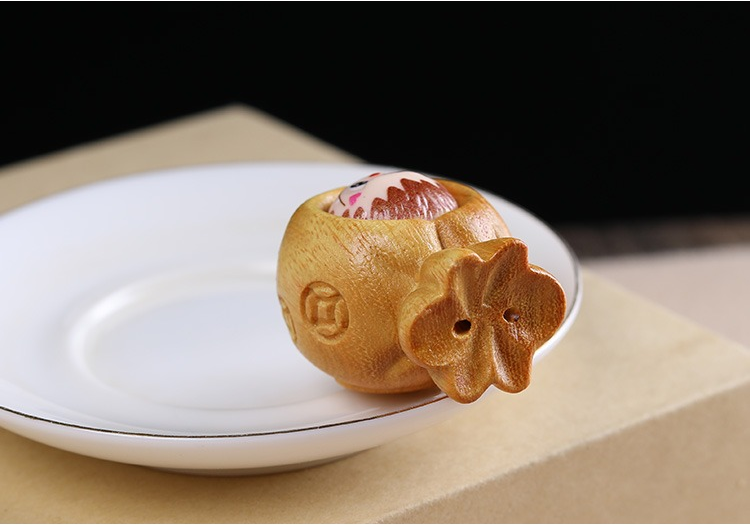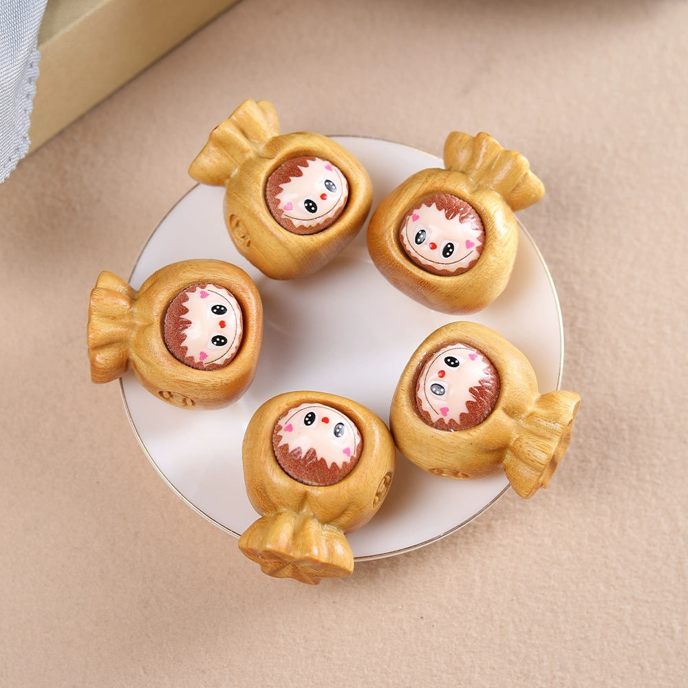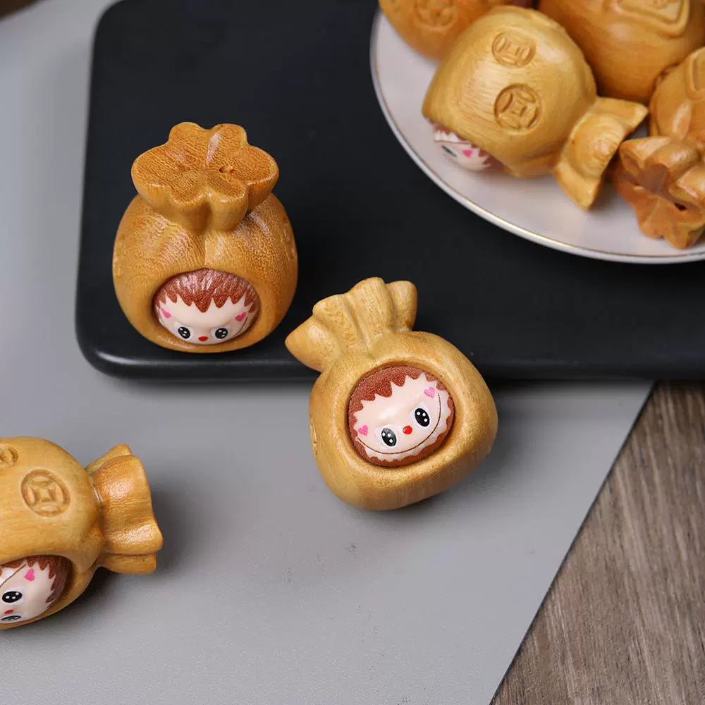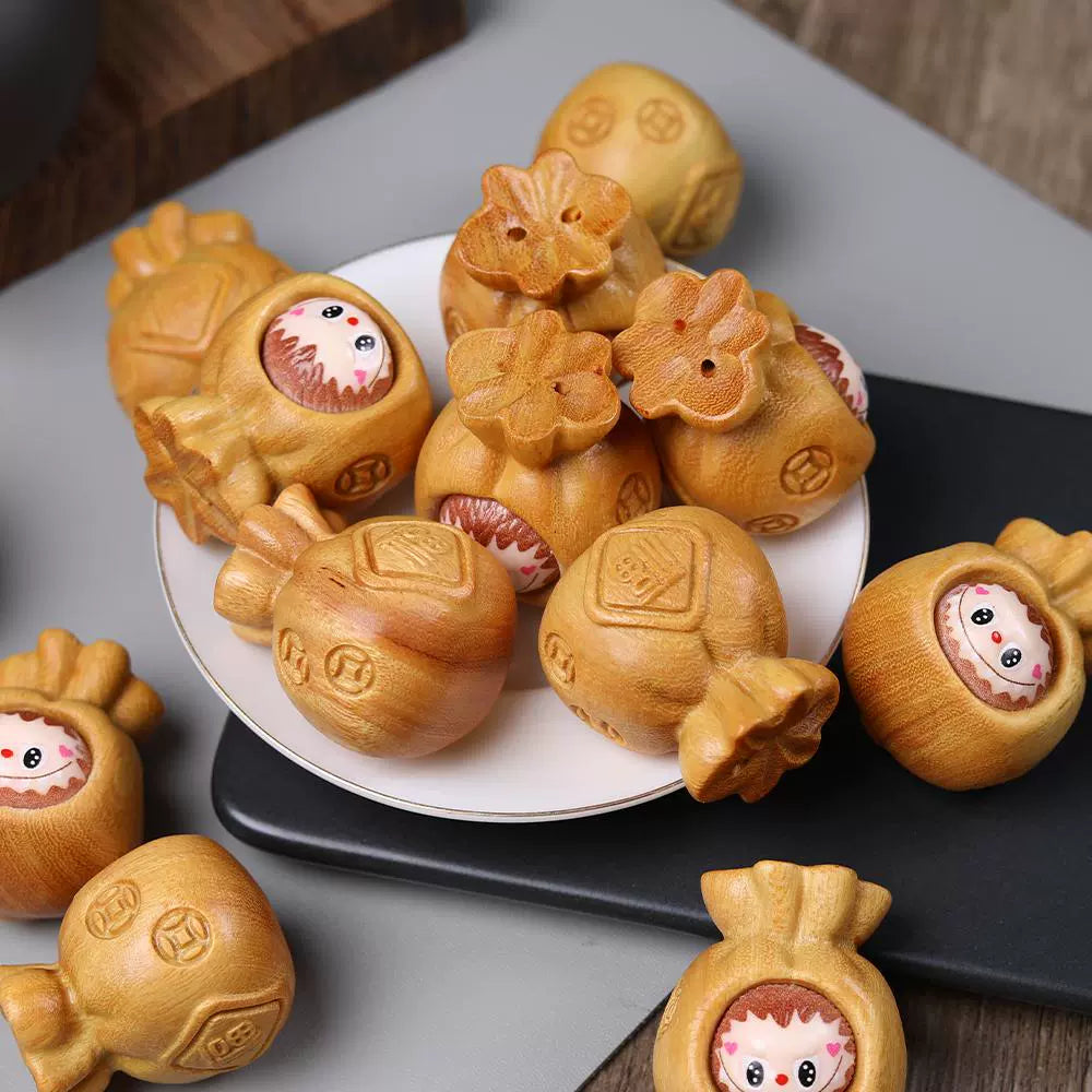 LABUBU Carved Wooden Pendant - 3D Lucky Charm for DIY Jewelry & Keychains