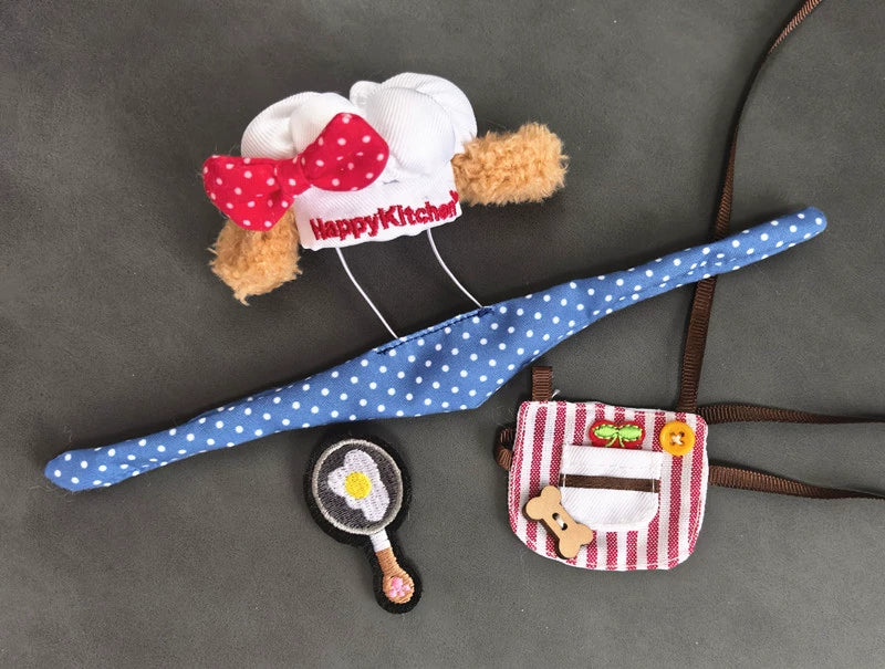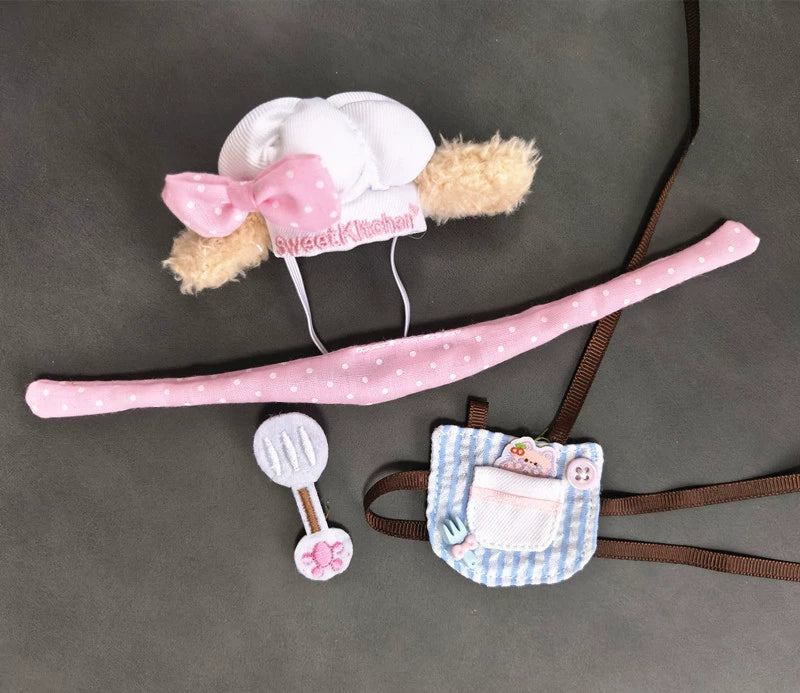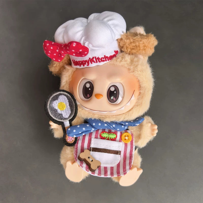 15/17cm Labubu Chef Outfit - Pink Dot Kitchen Set for Sitting Party Series Doll