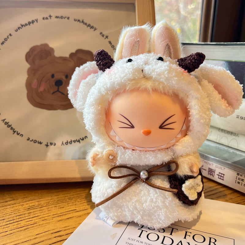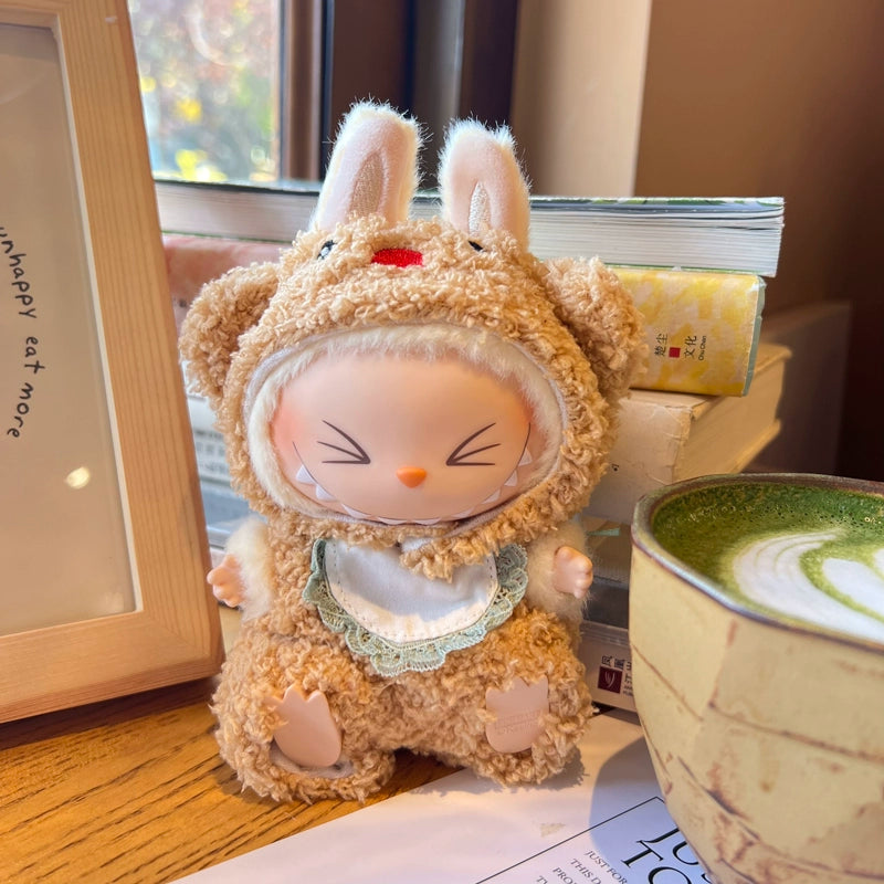 Doll Clothes for Sitting LABUBU, Brown Knitted 3-piece Set - Cute Cartoon Outfits for 17CM POP MART Blind Box Plush Doll