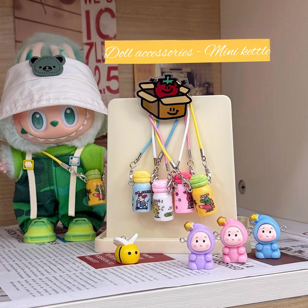 17cm Labubu Mini Accessory Set - Crossbody Bag & Tiny Kettle for Series 1/2/3 Dollhouse