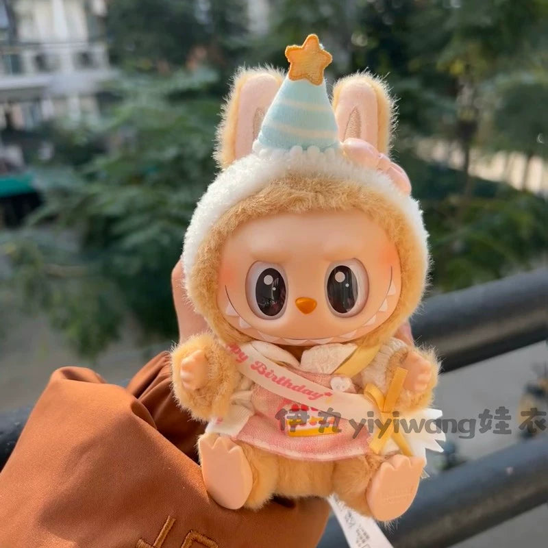POP MART Labubu 17cm Doll Clothes - Pink Dot Chef Outfit for Gen 1/2 Vinyl Figures (No Doll Included) | Keychain Accessory
