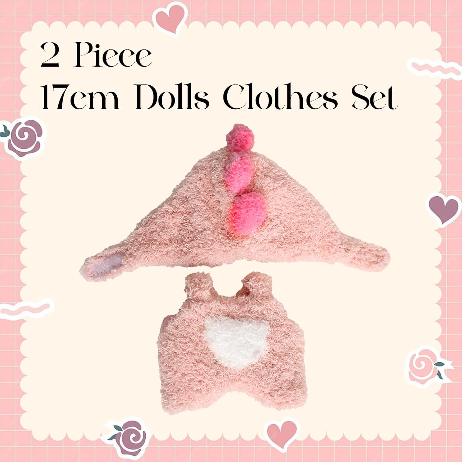 17cm Doll Clothes, Outfits for Clothes Set, Dolls Keychain Accessories, Faking Animal Style Outfit Jumpsuit (Bunny Pink)