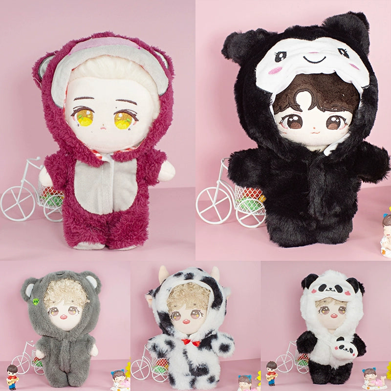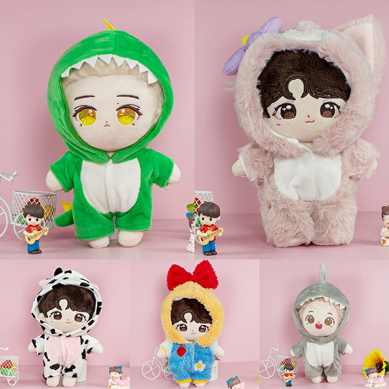 Handmade 20cm Cotton Doll Fuzzy Shark Onesie Pajama Set | Gray Shark Plush Sleepwear