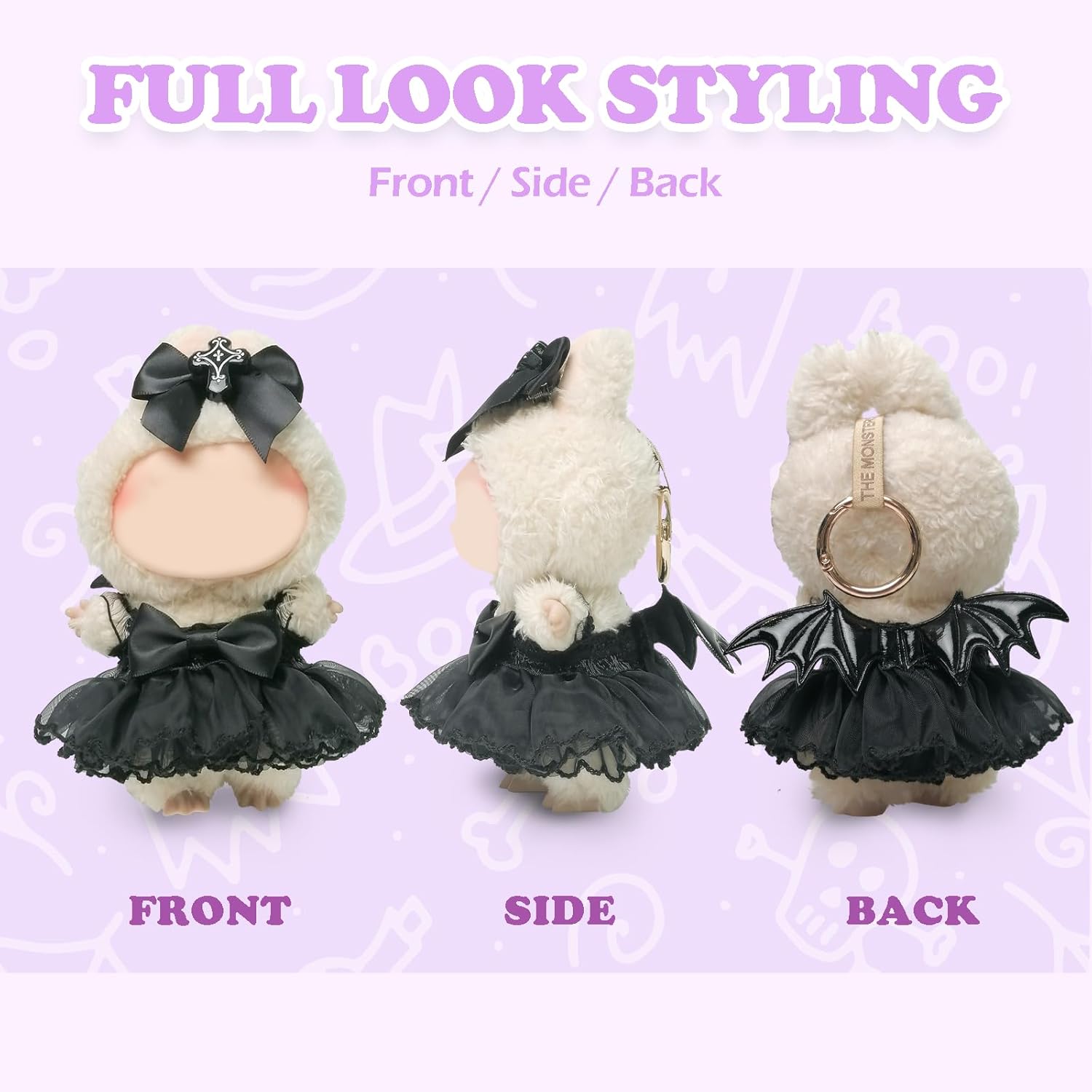 Enchanting "Dark Cross Enchantress" Outfit Set for Your Labubu Doll. Inspired by the captivating "Dark Cross Enchantress" theme, this set masterfully blends gothic elegance with fantasy doll fashion - perfect for collectors who adore dark romantic aesthetics. The intricate lace detailing on the skirt creates a striking silhouette, while the realistic devil wings add an element of supernatural charm. The delicate cross bow hairpin completes this enchanting look with its symbolic gothic appeal. Each piece has been meticulously crafted to maintain the perfect balance between dramatic style and wearability. WARNING: not a toy. for adult collectors ages 14+ only. designed exclusively for 17cm labubu dolls (may not fit other sizes or brands).