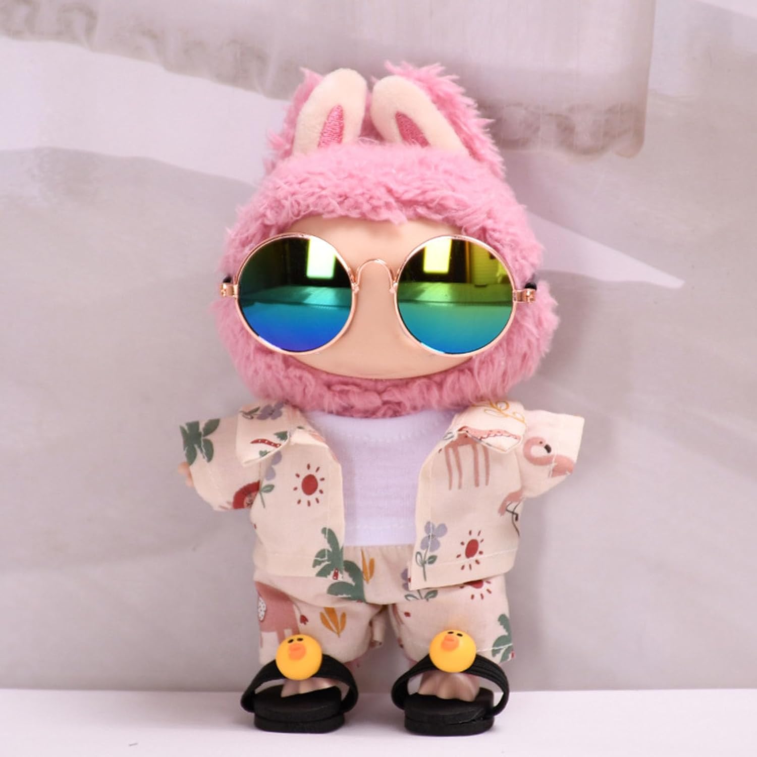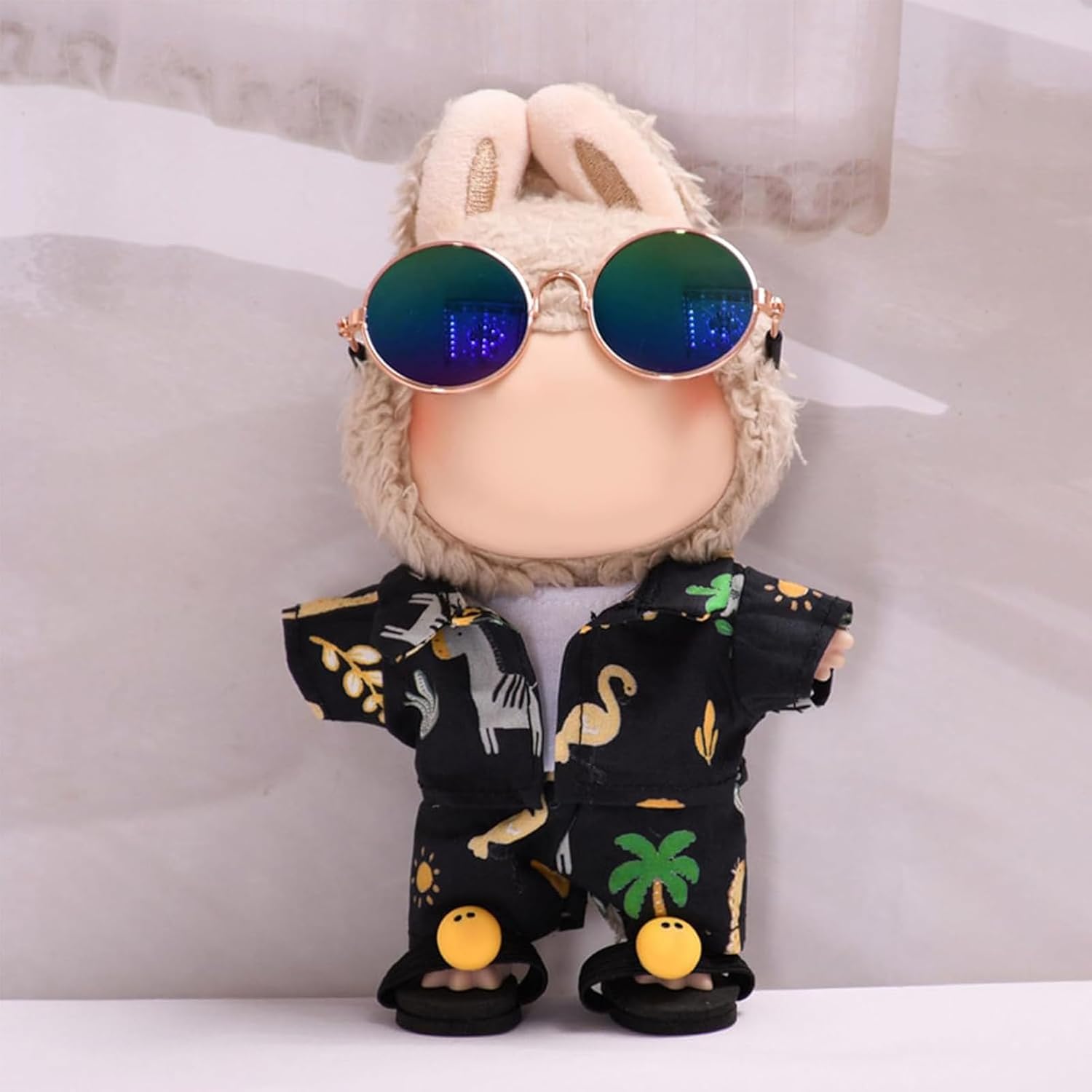 Clothes for 17cm Labu Doll Luxury Chic Doll Clothing & Style Bundle High-End Fashion Beach Set Accessories Including Clothes + Pants+ Glasses+Slippers Labu (No Doll) (Black Beach Suit (no Doll))
