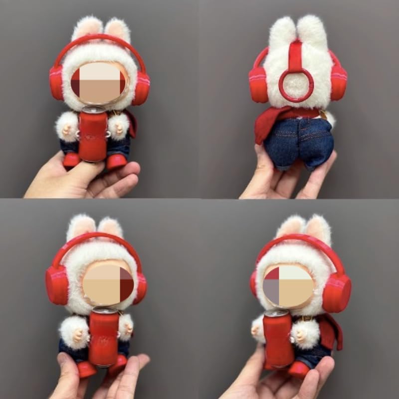 LABUBU Clothes 3-Piece Outfit Set with Headphones - Trendy for 17cm Cola Dolls,Perfect for Everyday Play & Display(NO Doll) (Red Earphones)