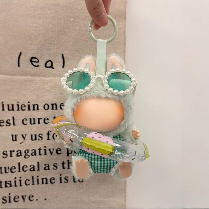 Clothes for Labubu 3-Piece Summer Beach Swim Set - Quick-Dry Fabric with Swimsuit,Swim Ring & Sunglasses,Perfect for 17cm Dolls(No Doll) (Green)