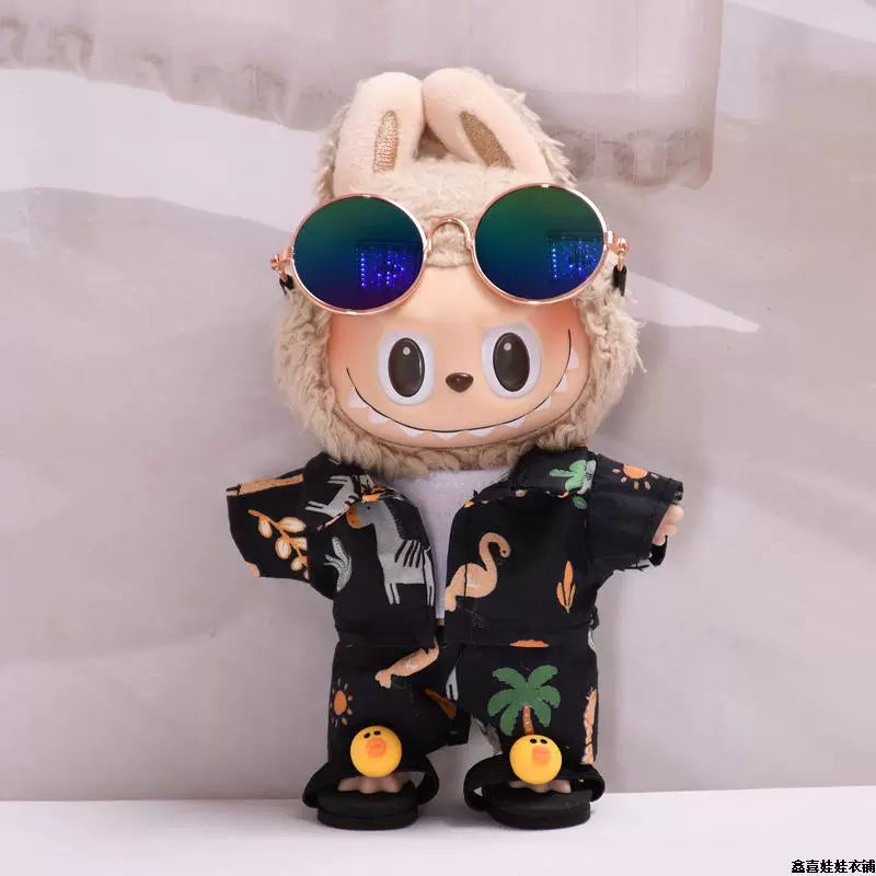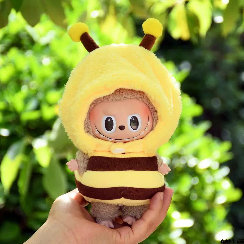 17cm Labubu Gen 1-3 Universal Fit Handmade Pink Bunny 3-Piece Set | Overalls + Hat + Mini Thermos Cup | Vinyl/Plush-Compatible Clothes Only for Collectible Dolls