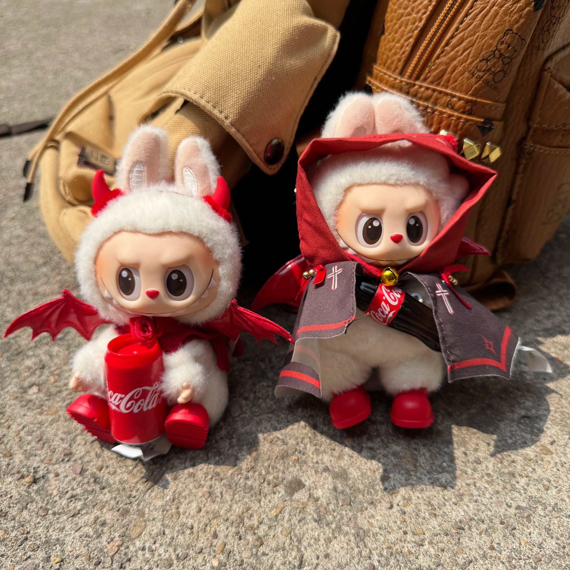 Labubu Coca-Cola Sitting Party Outfit - Red Devil Costume w/ Wings & Tail for Vinyl Doll