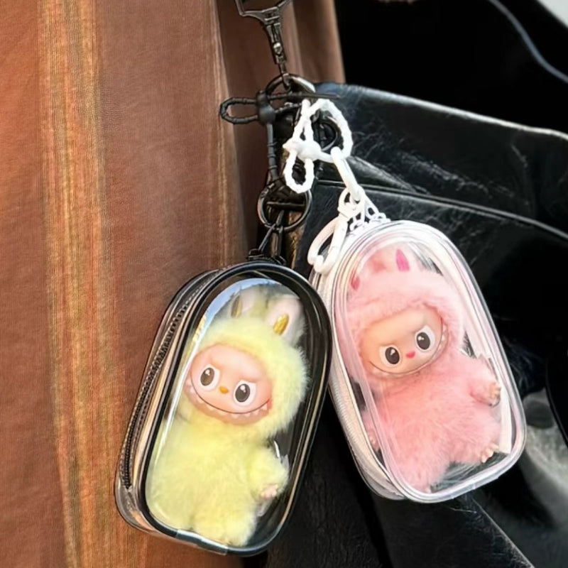 Labubu 4.0 PVC Carrier Bag - Clear Hanging Dustproof Case for Doll Display & Travel