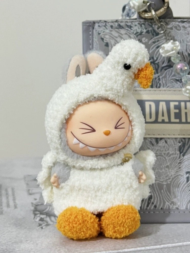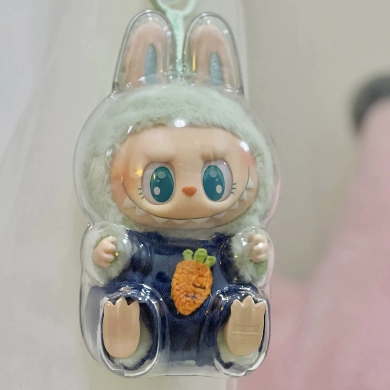 17cm Labubu Gen 1-3 Handmade Classic Denim & Striped Collection | Vinyl/Plush-Compatible Multi-Piece Set with Embroidery & Accessories