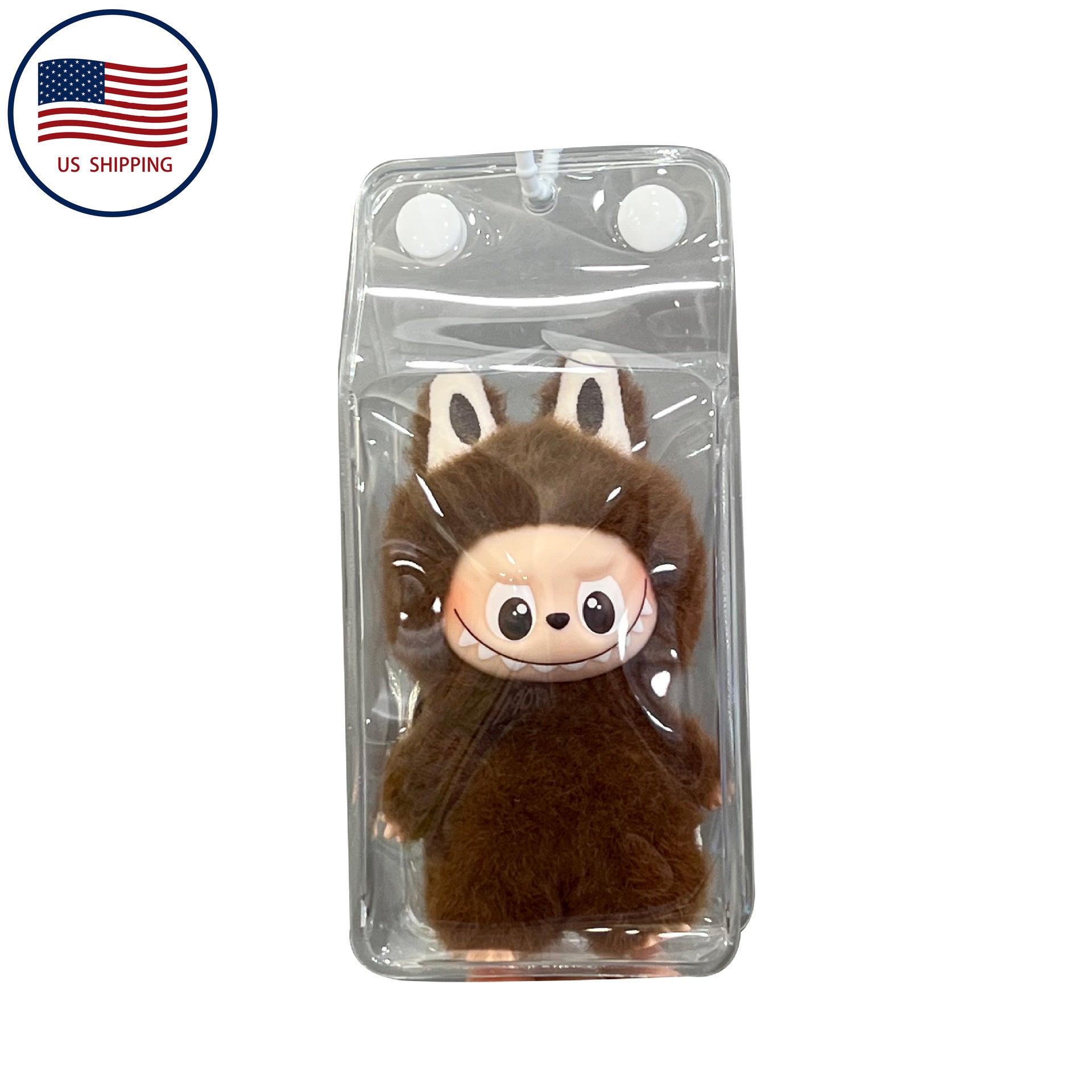 10.5cm Labubu 4th Gen Heart Code Mini Doll Carrier | Milk Carton Style Storage Bag & Protective Cover for 10cm Vinyl Charms