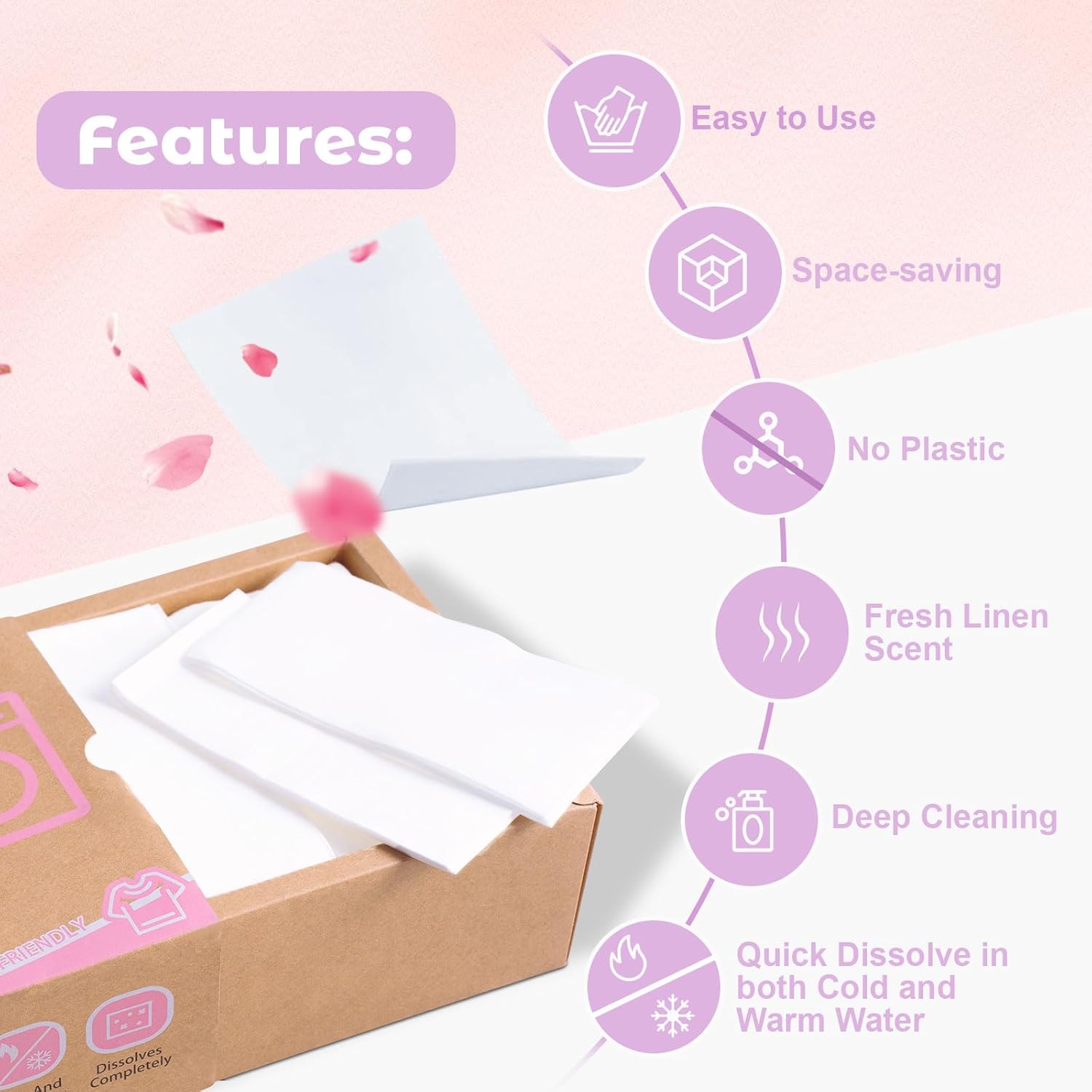 Laundry Detergent Sheets, Travel Laundry Detergent Sheets 300 Loads Eco-friendly Plastic-Free Washing Detergent Sheets with Frensh Linen Scent