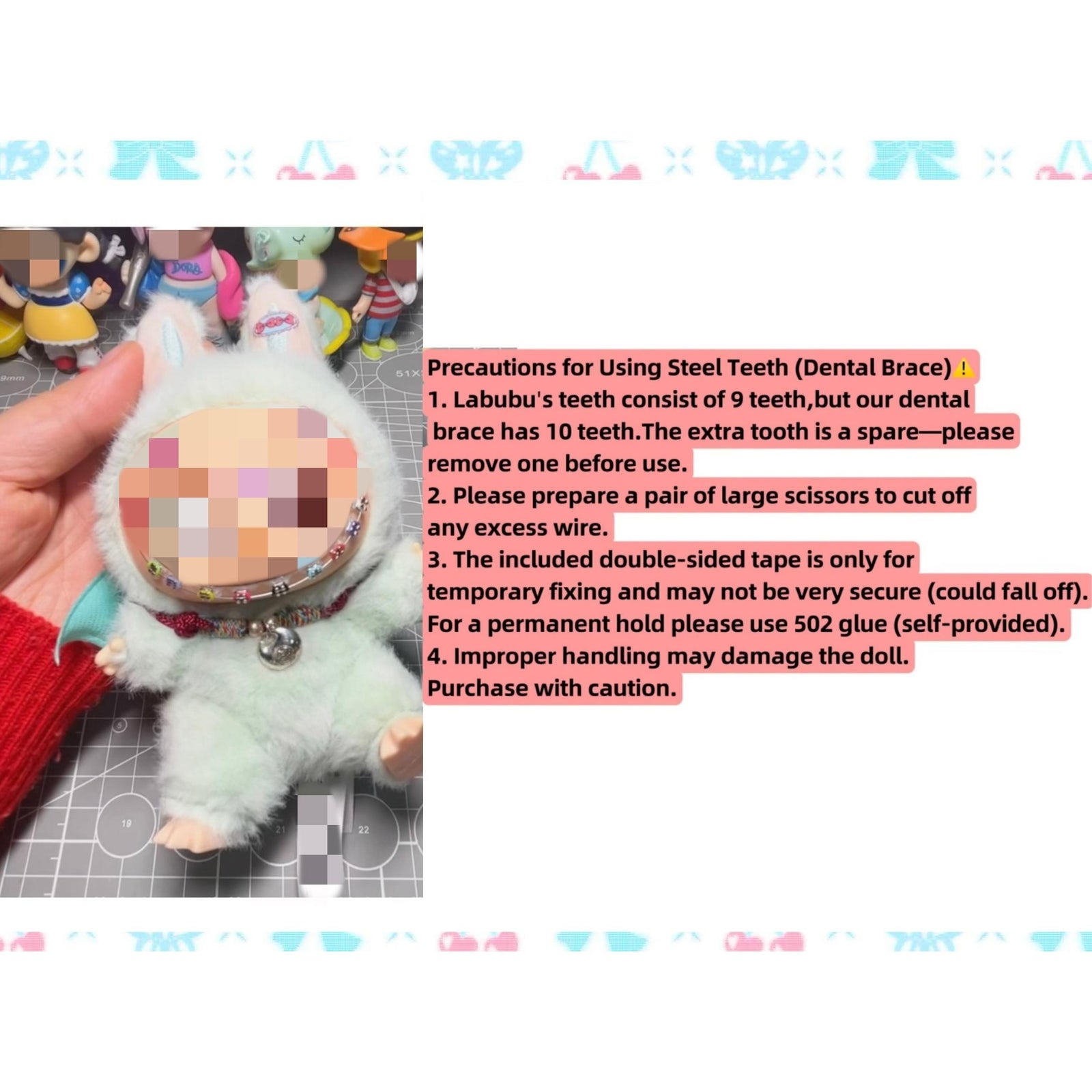 From cute close-ups to fun group shots, your doll is sure to stand out from the crowd and capture the hearts of fellow collectors. These braces are not just accessories; they're a statement piece that adds character and personality to your blind box figures.